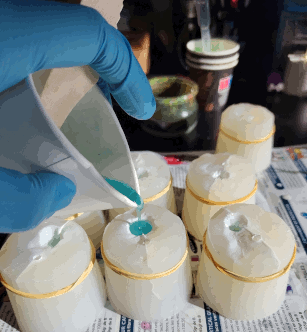 It then goes into a pressure pot to remove (compress) air bubbles and cure. Once hardened end emptied, the silicon mold can be filled up with epoxy resin.