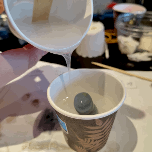 It then goes into a pressure pot to remove (compress) air bubbles and cure. Once hardened end emptied, the silicon mold can be filled up with epoxy resin.